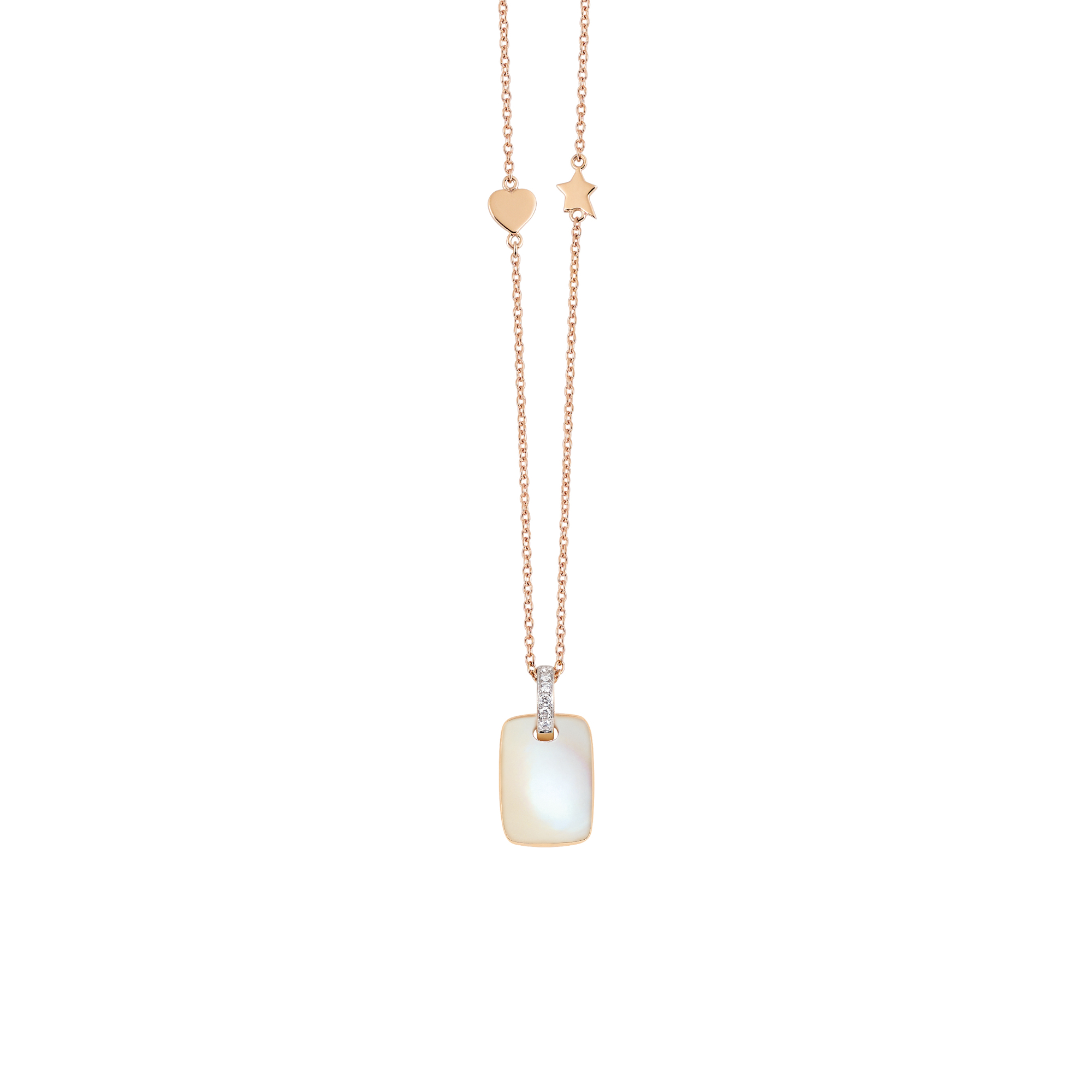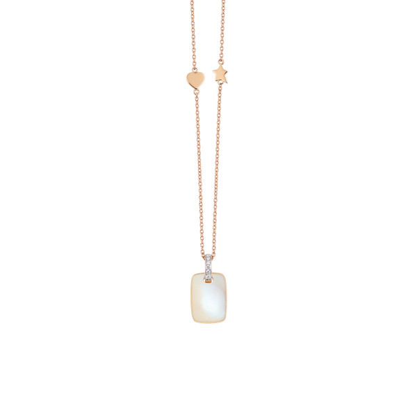 Ref. NC3037MOR - Das La Piazza Venezia Collier verbinden 18 Karat Roségold mit einem sanft schimmernden Perlmutt im Zentrum. Weiße Brillanten setzen funkelnde Akzente und unterstreichen die zeitlose Eleganz dieses Designs. Inspiriert von der Lebendigkeit der venezianischen Piazze. Ein Schmuckstück voller Luxus, Emotion und italienischer Leichtigkeit.