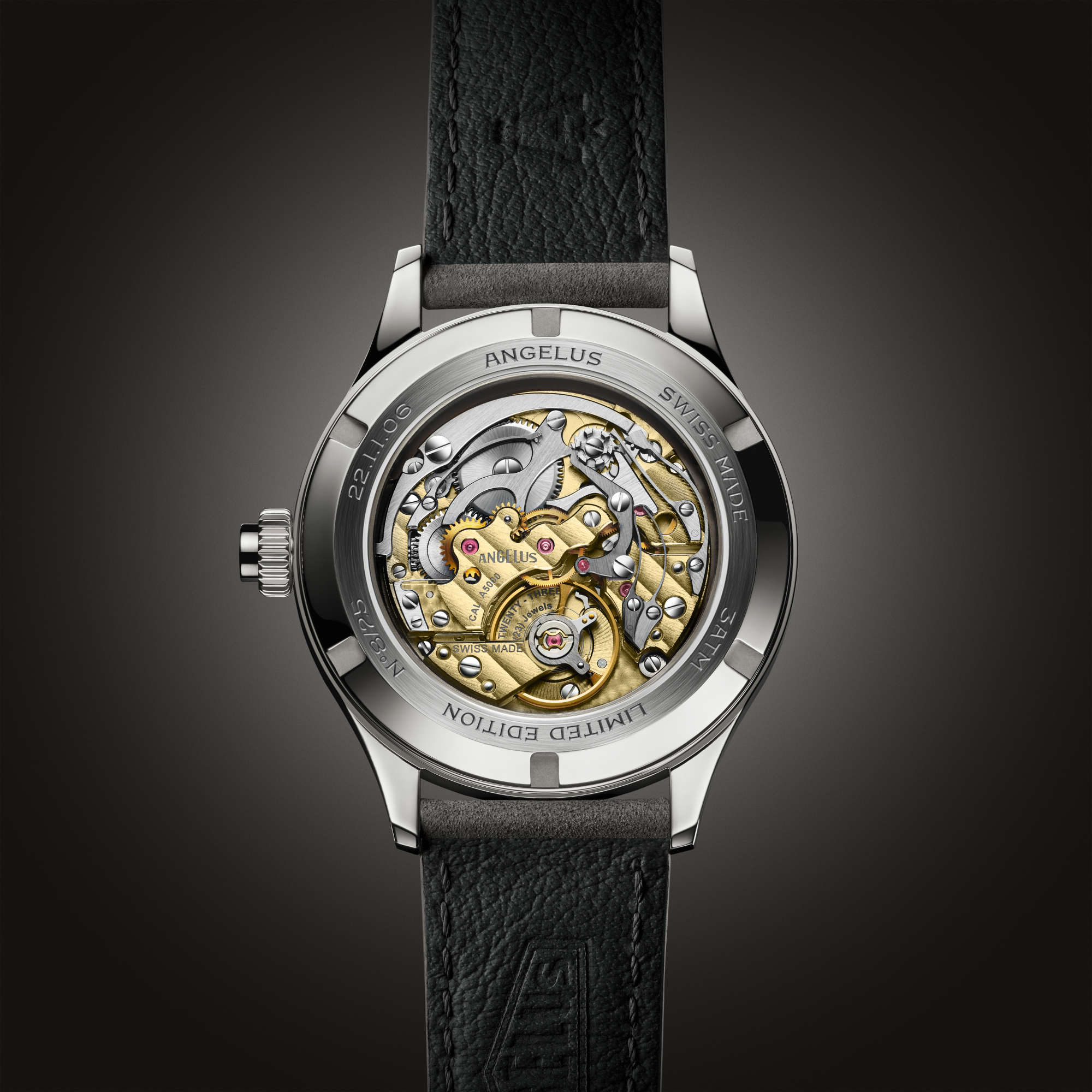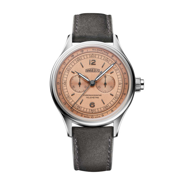 Ref. 0CHCS.P01A.V010S - Mit einem Durchmesser von 37 mm, einem Zifferblatt im Vintage-Stil und einem in die Aufzugskrone eingelassenen Monodrücker enthält dieses Zeitmessinstrument für kurzes Intervall unzählige Hommagen an die reiche Geschichte von Angelus und insbesondere an seine Spezialisierung auf die Herstellung von Chronographen. Sein edler Handaufzugsmechanismus, seine historischen Wurzeln und seine hochwertigen Veredelungen verleihen diesem Chronographen eine äußerst elegante Retro-Ästhetik.