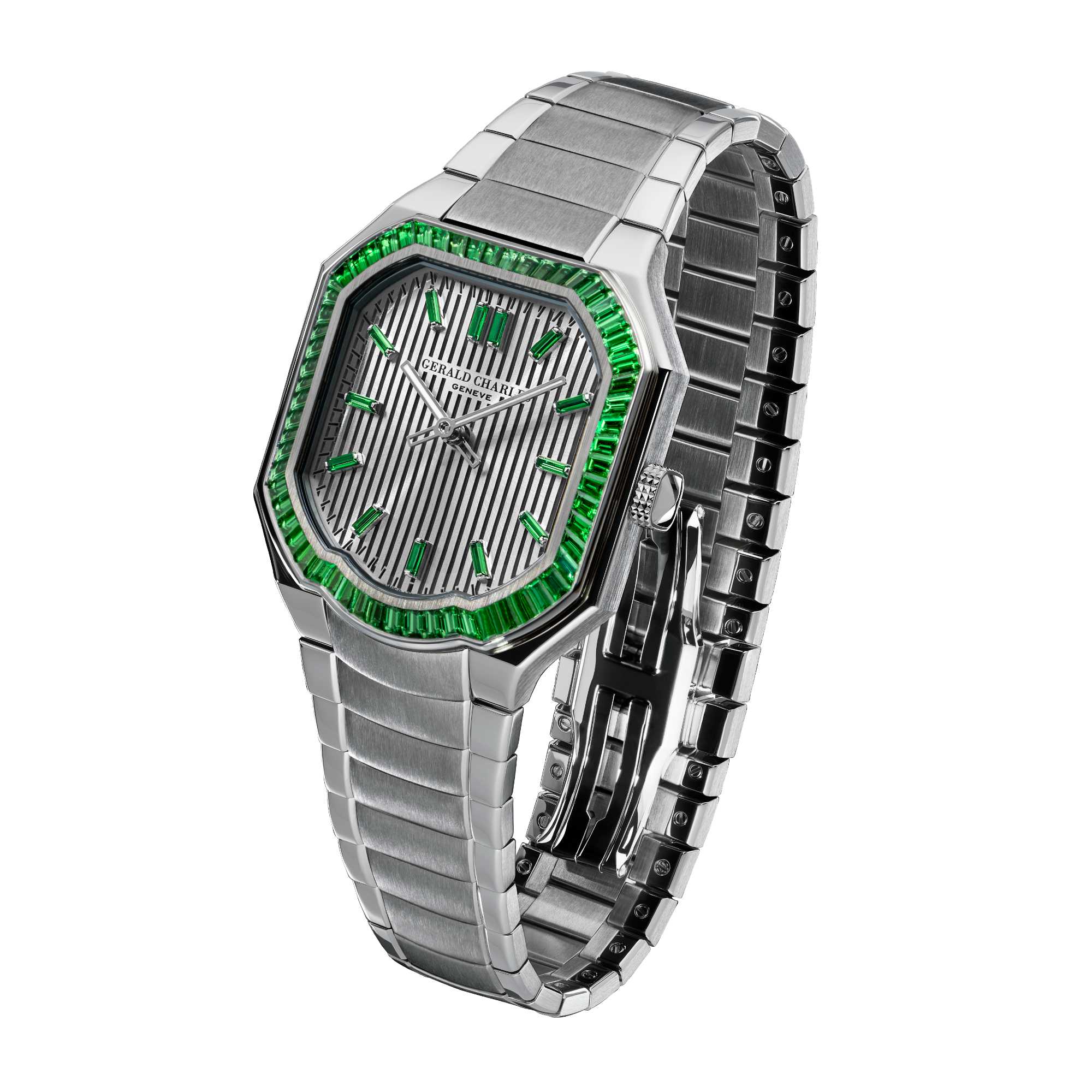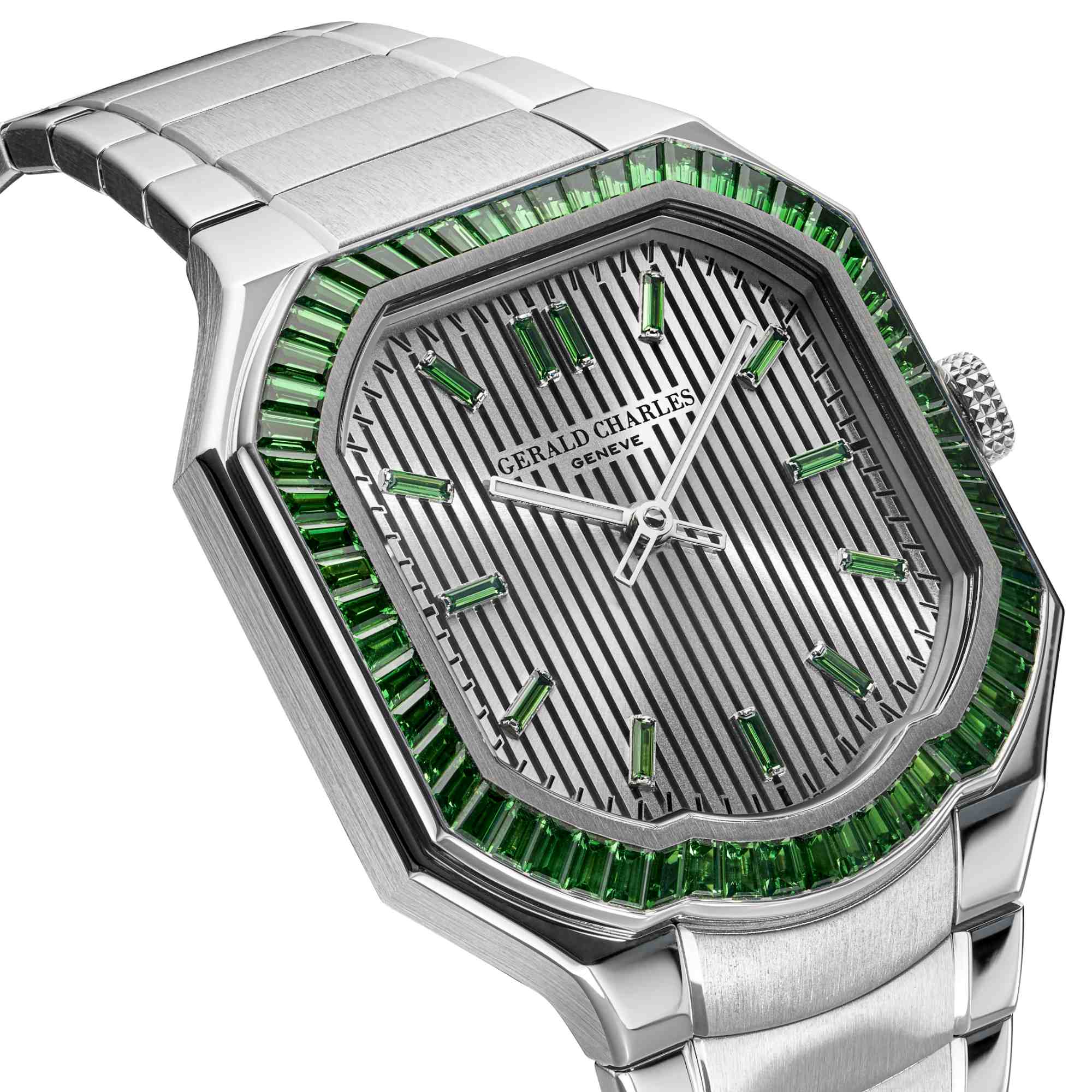 Ref. ML1.0-SSPS-WG43-18GS-SBCL - Diese seltene Interpretation der Masterlink besticht durch eine Lünette, die mit 60 Tsavoriten im Baguette-Schliff von reinster Intensität verziert ist. Das leuchtende Grün harmoniert mit dem asymmetrischen Maestro-Gehäuse und unterstreicht die Handwerkskunst und Originalität dieser Uhr. Mit einer Auflage von nur 10 Exemplaren fängt sie die Brillanz der Natur in einem Juwel der Uhrmacherkunst ein.