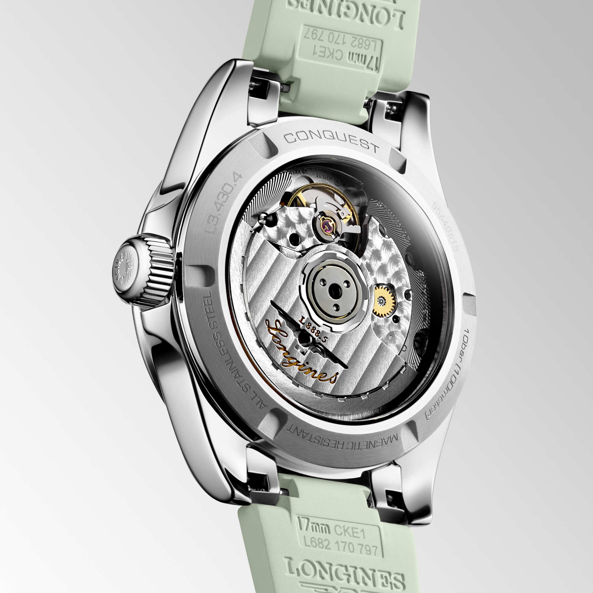 Verschraubter Gehäuseboden mit durchsichtigem Saphirglas