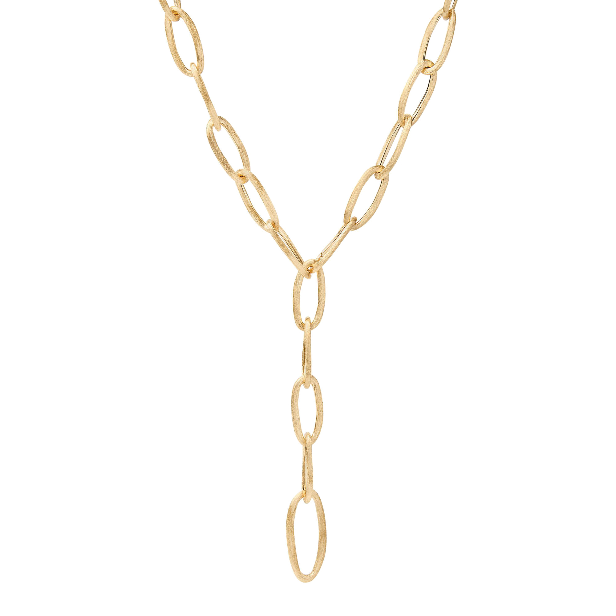 Ref. CB2667 Y - Eine neue Interpretation der klassischen Kette, die auf zeitgemäße Weise neu interpretiert wird, um ein zeitlos stilvolles Ergebnis zu erzielen. JAIPUR LINK ist eine Serie von kreisförmigen Ringelementen, die miteinander verbunden sind, um ein dreidimensionales Zusammenspiel außergewöhnlicher Formen zu erzeugen und eine unregelmäßige Kette von raffinierter Raffinesse zu erzeugen. Diese Serie besteht auch aus 18-karätigem Gelbgold, das von Hand mit der alten florentinischen Sticheltechnik fein graviert wurde, um der Oberfläche ein unregelmäßiges, gebürstetes Finish zu verleihen, das für einen außergewöhnlich modernen Look sorgt.