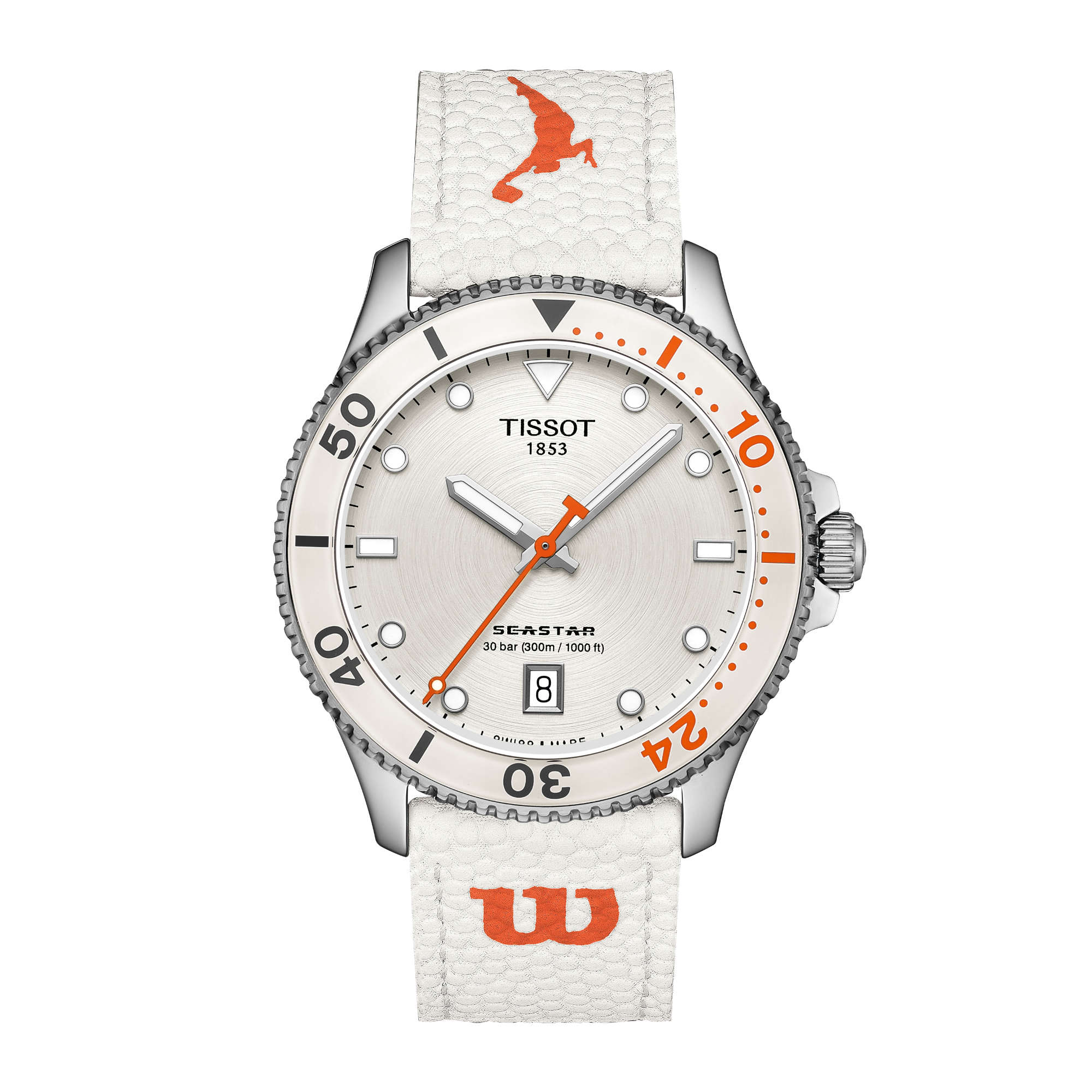 Ref. T120.410.17.011.00 - Die Tissot Seastar Wilson WNBA Uhr ist eine Sonderedition, die in Zusammenarbeit von Tissot und dem Sportartikelhersteller Wilson Sporting Goods zu Ehren der nordamerikanischen Basketball-Profiliga der Damen, WNBA (Women's National Basketball Association), designt wurde.