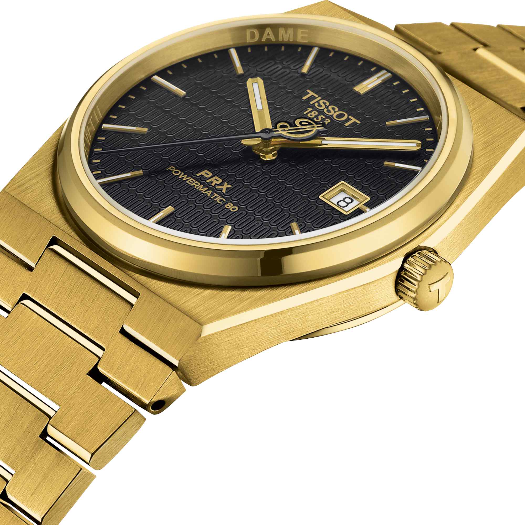 Ref. T137.407.33.051.00 - Die Tissot PRX Powermatic 80 Damian Lillard Special Edition besitzt ein 316L-Edelstahlgehäuse mit 40 Millimetern Durchmesser und gelbgoldfarbener PVD-Beschichtung. Kratzfestes, entspiegeltes Saphirglas gewährt Robustheit und beste Ablesbarkeit. Ihr Sichtboden besteht aus Mineralglas.